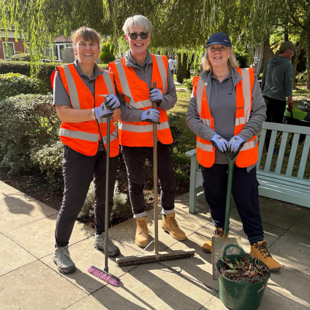 Kathie Wordsworth, Leona Mercer and Sharon Oates donned their hi vis vests to participate in a corporate volunteering day on 24 September 2025 at Prince of Wales Hospice in Pontefract, alongside other members of We are Wakefield.